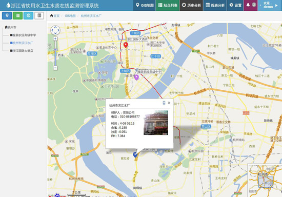 对水质进行自动、准确的监测,能实时查看所设站点的水质数据。并根据站点列表和站点GIS地图所展现的实时数据以及项目数据异常提示快速有效的发现水质问题。